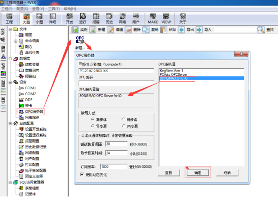 二、动组态王软件后连接SMOPCSever3.0